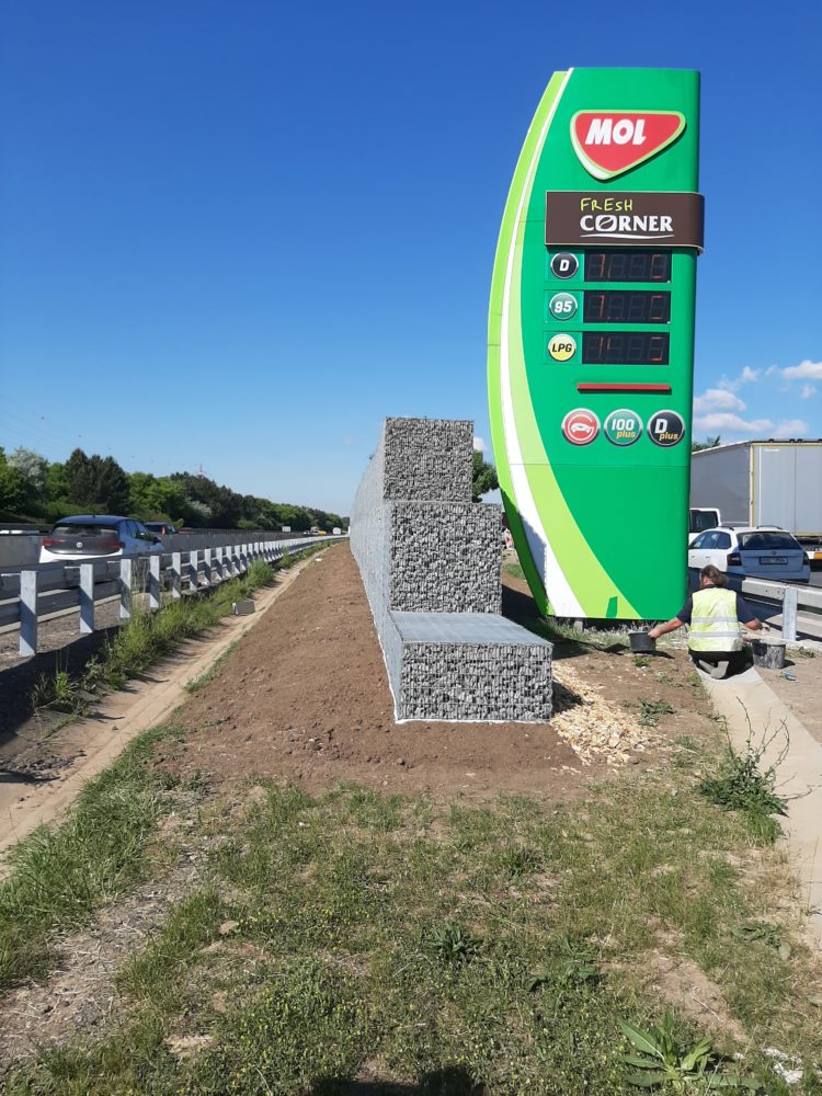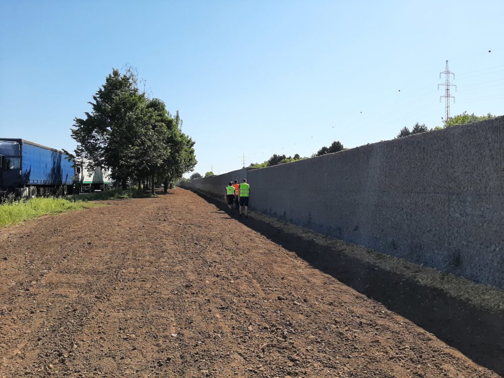 Stavba gabionové zdi na dálnici D1 u odpočívky Vyškov míří do finiše