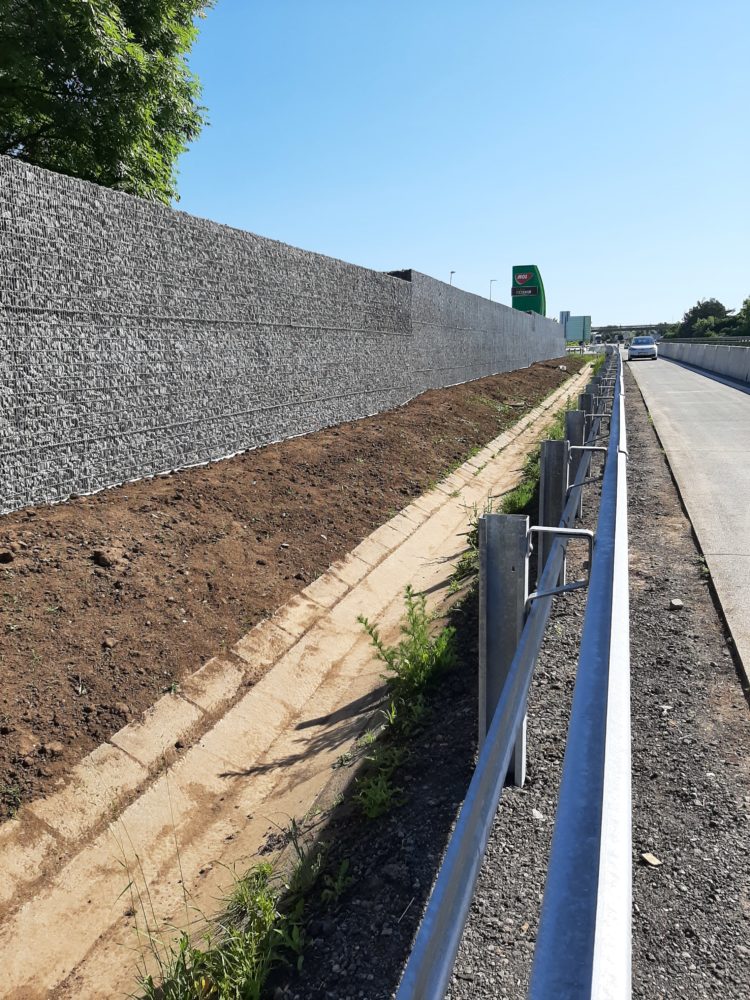 Stavba gabionové zdi na dálnici D1 u odpočívky Vyškov míří do finiše. Hotová bude už 20. 6. Do té doby ještě zůstává uzavřen odstavný jízdní pruh a část pravého jízdního pruhu v km 228-227 ve směru na Brno. Díky gabionové zdi dojde k odhlučnění a odstínění prostoru odpočívky.