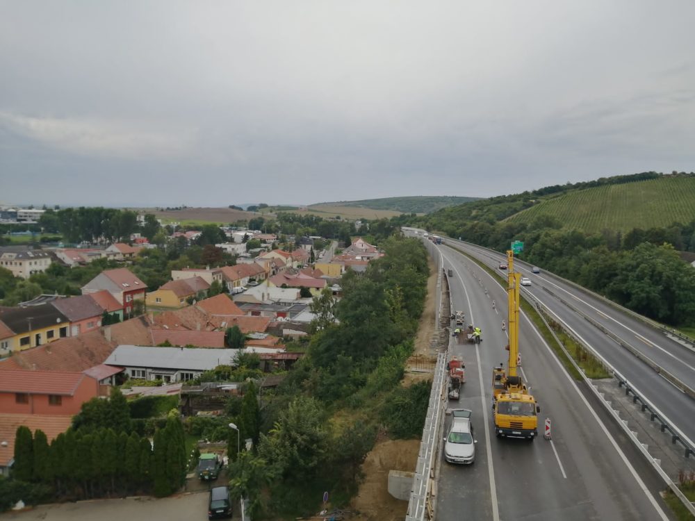 Stavba protihlukové stěny na dálnici D2 v km 25 – 27 ve směru na Břeclav svižně pokračuje. Osazujeme prefabrikované prvky, výplně stěny, betonujeme pylony (ul. Havlíčkova). Bourací práce jsme již dokončili. Stavbu protihlukové stěny v délce 1900 m dokončíme ještě letos. Cílem stavby je zlepšení životních podmínek obyvatel Hustopečí.