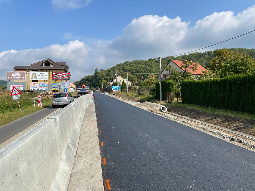 Uzavírka silnice I/43, kde budujeme odbočovací pruh na křižovatce k obci Závist a současně opravujeme povrch vozovky mezi obcemi Lažany a Milonice, skončí už 31. 10. Uzavírku a objízdnou trasu pro vozidla do 3,5 t, která vede přes Černou Horu, Žernovník, Malou Lhotu a Újezd u Černé Hory do obce Lažany jsme pro eliminaci dalších dopravních omezení záměrně využili pro obě akce společně. V obci Milonice, kde budujeme odbočovací pruh, je však ještě nutné dodělat úsek cca 40 m za autobusovými zastávkami. Provoz v tomto krátkém úseku budou ještě do konce listopadu řídit semafory.