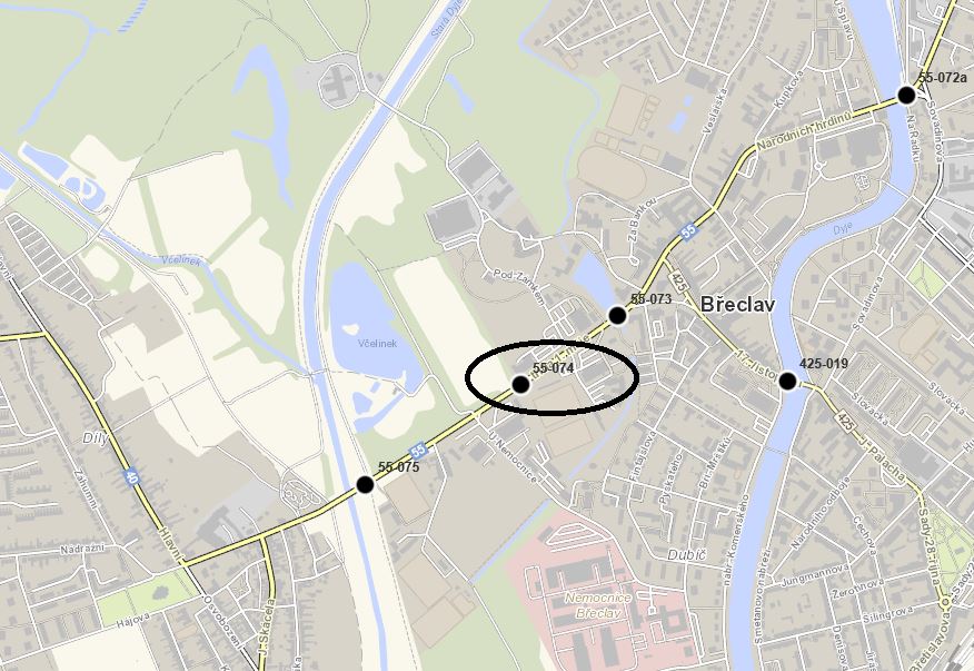 V Břeclavi plánujeme víkendovou lokální opravu silnice I/55 na třídě 1. máje. Během víkendu od 14. do 16. 6. zde opravíme výtluky a výškově pokleslé předpolí mostu viz mapka výše. Provoz bude veden kyvadlově a řídit ho dle potřeby budou semafory či pracovníci s vysílačkami. Děkujeme za trpělivost!