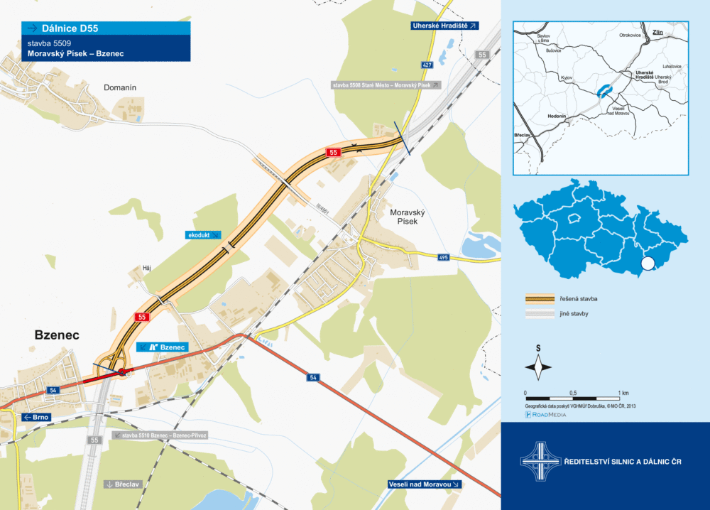Tento čtyřkilometrový dálniční úsek D55 nahradí kapacitně již nedostačující silnice II/427 a I/54 a odvede tranzitní dopravu z Moravského Písku, což přinese místním obyvatelům zásadní zlepšení životního prostředí. Přesun dopravy na čtyřpruhovou, směrově rozdělenou komunikaci zvýší také bezpečnost řidičů, jelikož se odstraní riziko střetu s protijedoucími vozidly.