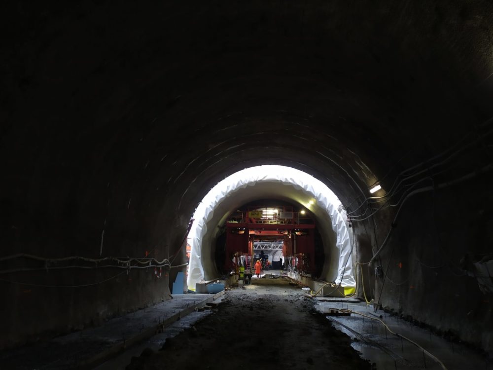 Stavba II. etapy I/42 VMO Brno – Žabovřeská opět výrazně pokročila. U přesypané části tramvajového tunelu nám už jen zbývá dodělat betonáž posledního profilu! V ražené části děláme hydroizolaci. Pokračujeme také v budování silniční galerie, opěrných zdí a přeložkách inženýrských sítí.