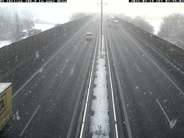 Zima se v Jihomoravském kraji opět připomněla. Dálnice a silnice I. tříd jsou převážně mokré po chemickém ošetření. V některých sledovaných úsecích máme hlášeno riziko vzniku náledí. POZOR na nebezpečí smyku na dálnici D1 v km 179 a na silnicích I/54, I/43 a I/19. Jezděte dnes opatrně!