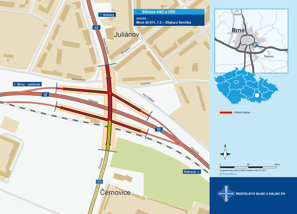 ŘSD vybralo zhotovitele stavby “I/42 Brno, most Otakara Ševčíka přes Ostravskou ulici”, kterým je sdružení OHLA ŽS, a.s. a Metrostav TBR a.s. za nabídkovou cenu 419,993 mil. Kč. Stavba je realizována v režimu D&B a zahájení realizace stavby plánujeme letos v říjnu.