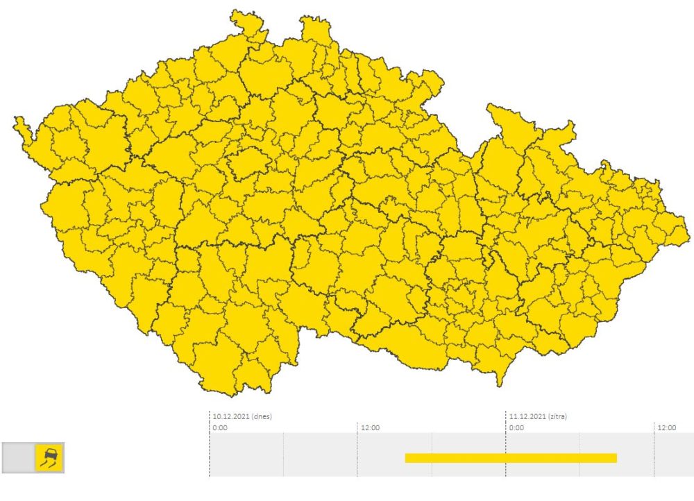 Výstraha Českého hydrometeorologického ústavu 10. – 11. 12.