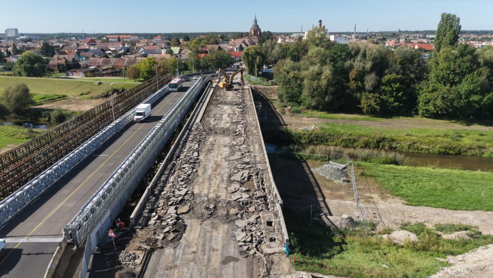 Začali jsme bourat most přes rameno Dyje v Poštorné. Včera jsme odfrézovali vozovkové vrstvy a dnes nastupuje těžká technika. Demolice mostovky i hluboko založených pilířů nám zabere zhruba tři týdny. Postupujeme po polovinách – jednu polovinu bouráme a zároveň na ní začneme budovat nový most, zatímco druhou polovinu ještě odstraňujeme. Po novém mostu se řidiči projedou v první polovině příštího roku.