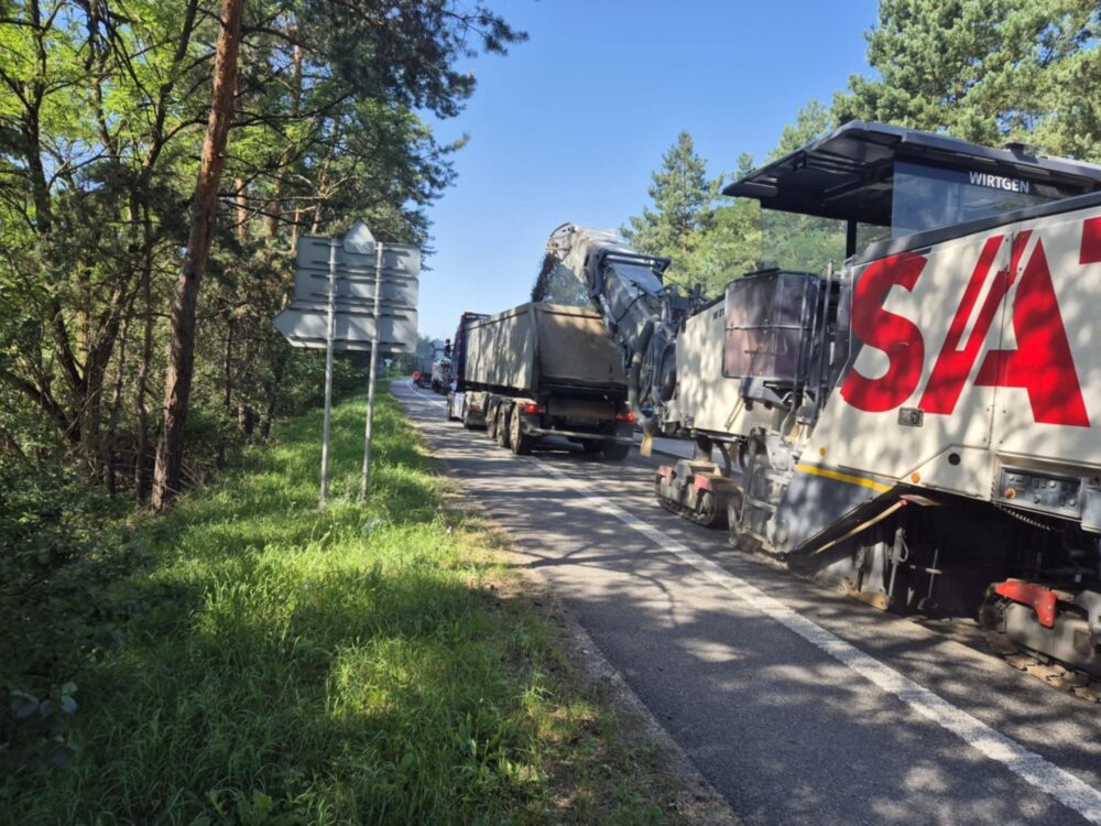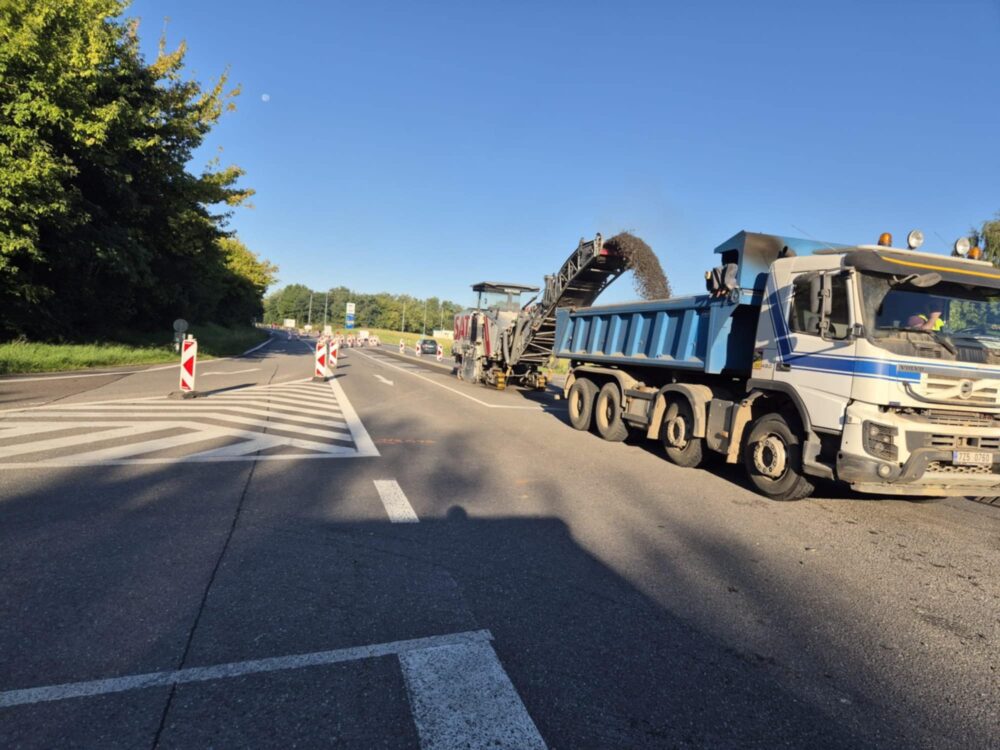 Frézováním vozovky jsme dnes zahájili opravu tříkilometrového úseku silnice I/55 mezi Hodonínem a Lužicemi. Dokončení prací plánujeme do 18. října. Provoz na silnici I/50 je veden pouze jednosměrně. V směru na Uherské Hradiště řidiči jezdí po objízdné trase po souběžné komunikaci ve Velkomoravské ulici, v opačném směru po silnici I/55.