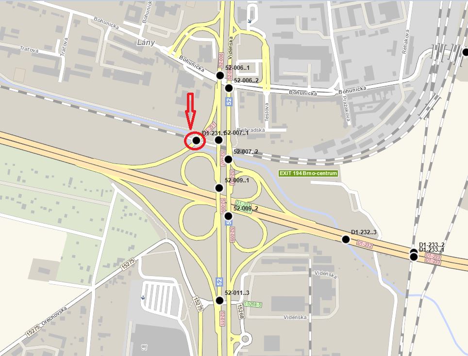 d) 24. 9. (07:00–16:00) kvůli odstranění přechodné úpravy provozu: část přímé nájezdové větve MÚK Brno-centrum (EXIT 194) vlevo v dl. 275 m. Provoz na nájezdové větvi bude veden 1 jízdním pruhem.