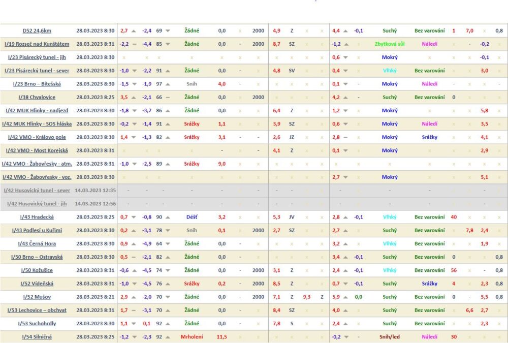 Zima se stále nevzdává, řidiči jezděte opatrně! Pozor na riziko vzniku náledí na silnicích: I/19 Rozseč nad Kunštátem, I/42 MÚK Hlinky, I/23 Brno Bítešská, I/54 Silničná.