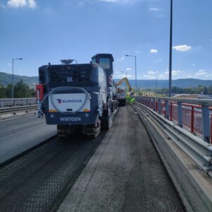 V Karlových Varech na silnici I/6 jsme na mostě u Tesca dokončili opravu povrchu vozovky v jízdním pásu ve směru na Cheb a nyní začínáme s rekonstrukcí jízdního pásu ve směru na Prahu, který je pro řidiče zcela uzavřen. Obousměrný provoz je sveden do jízdního pásu směr Sokolov. V tomto úseku opravíme plochu o rozloze 17 100 m2. Tuto etapu plánujeme ukončit do 9.října a pokračovat na dalším úseku, a to z Karlových Varů k Dalovicím v jízdním pásu směr Cheb.
