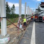 Dnes 8. srpna dokončujeme stavbu protihlukové stěny na dálnici D6 u obce Březové ve směru na Karlovy Vary. Na protihlukovou stěnu o délce 372 m s výškou 4,4 m bylo potřeba 92 panelů s celkovou hmotností 5,5 tuny a 92 soklů o hmotnosti 1 tuny. Stěna z železobetonu zahrnuje také 2 únikové východy. Po ukončení hlavních stavebních prací bude probíhat úklid staveniště. Zhotovitelem zakázky v přibližné hodnotě 8,5 mil. Kč bez DPH je společnost Algon, a.s.