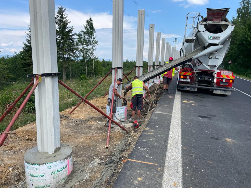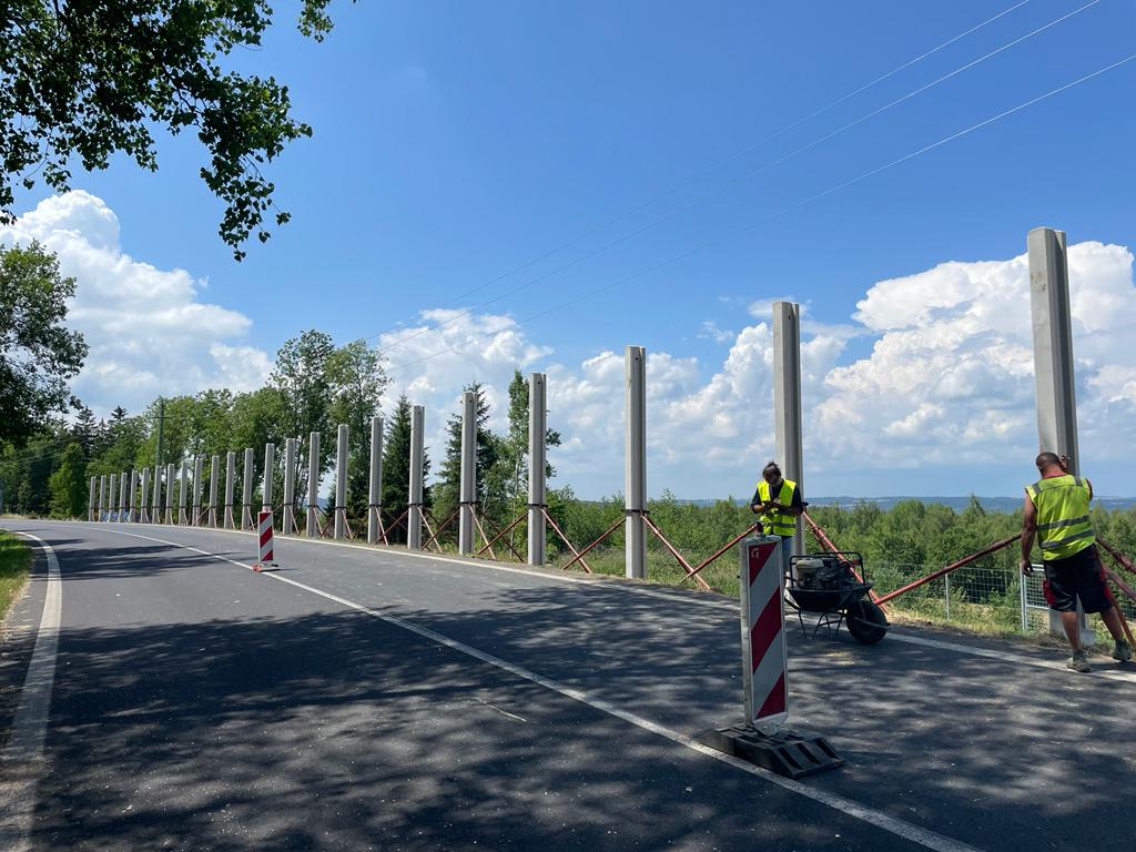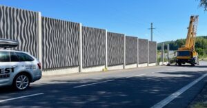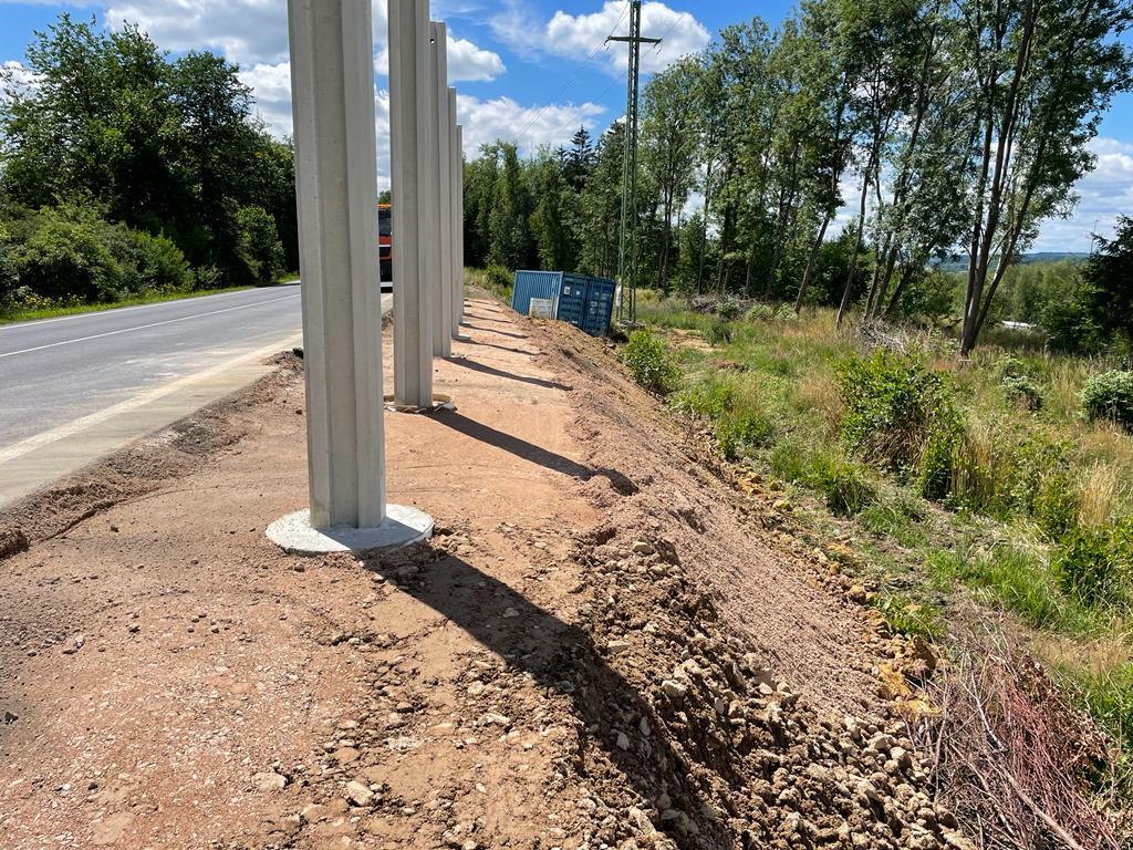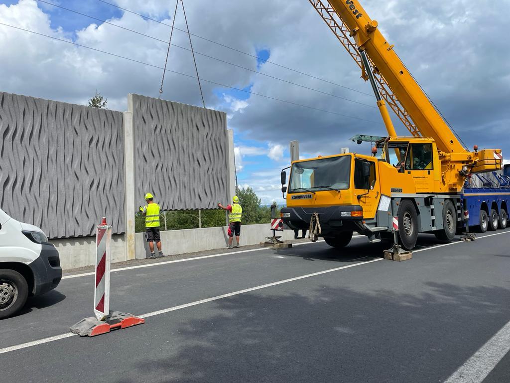 Dnes 8. srpna dokončujeme stavbu protihlukové stěny na dálnici D6 u obce Březové ve směru na Karlovy Vary. Na protihlukovou stěnu o délce 372 m s výškou 4,4 m bylo potřeba 92 panelů s celkovou hmotností 5,5 tuny a 92 soklů o hmotnosti 1 tuny. Stěna z železobetonu zahrnuje také 2 únikové východy. Po ukončení hlavních stavebních prací bude probíhat úklid staveniště. Zhotovitelem zakázky v přibližné hodnotě 8,5 mil. Kč bez DPH je společnost Algon, a.s.