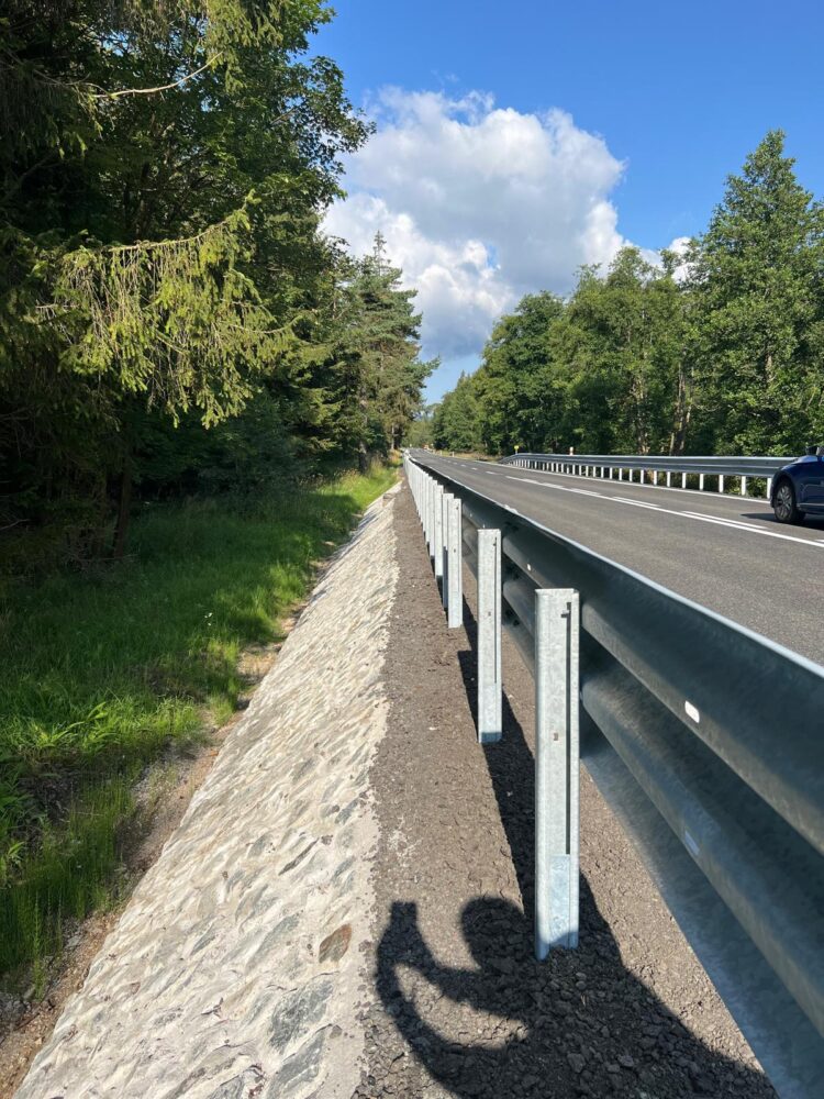 Na 4,3 km dlouhém úseku jsme vyměnili asfaltové souvrství, svodidla, pročistili a obnovili odvodňovací prvky. Odstranili jsme náletové zeleně bránící v odvodnění nebo zakrývající dopravní značení. Dále jsme také odstranili větší stromy v místech stávajících propustků, které znemožňovali řádný odtok povrchové vody.