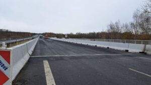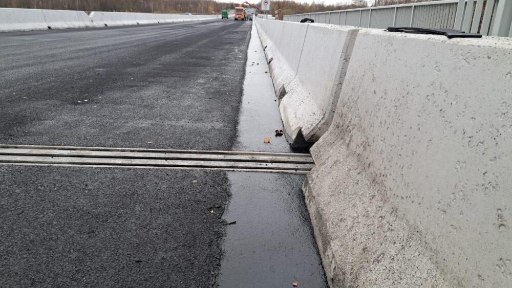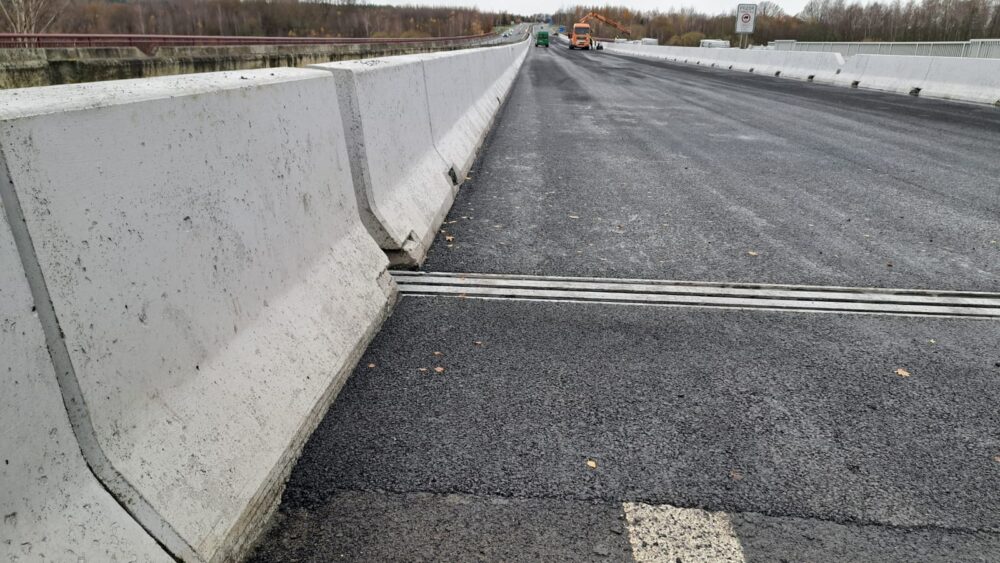 Aktuálně probíhá montáž zábradlí, práce na odvodnění a koncem týdne doplníme vodorovné dopravní značení. V příštím roce budou stavební práce pokračovat na druhém mostě (ev. č. 6-074h.2). A opět dojde k uzavírce jednoho jízdního pásu.
