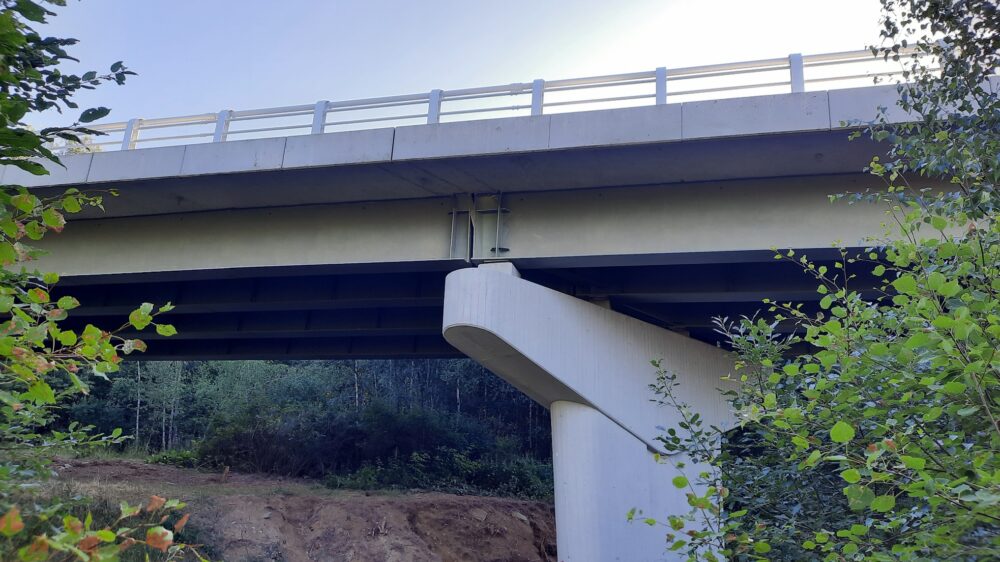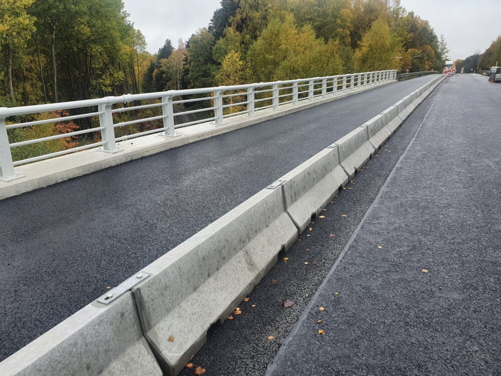 Hlavní stavební práce na mostě ev. č. 64-006b u Aše na silnici I/64 jsou dokončeny a místo je pro řidiče obousměrně průjezdné. Během stavebních prací, které jsme zahájili v květnu 2022 a vyžadovaly částečnou uzavírku, byla provedena výměna mostních závěrů, snesení stávajících vrstev komunikace až na nosnou konstrukci, odstranění izolací a říms včetně vybavení mostu. Následně byla zhotovena nová izolace nosné konstrukce, nové římsy, konstrukce vozovky a instalace nového záchytného systému. Nyní probíhají dokončovací práce mimo vozovku pod mostem. Zhotovitelem rekonstrukce v hodnotě 9,5 mil. Kč bez DPH je společnost LIZDROJ s.r.o.