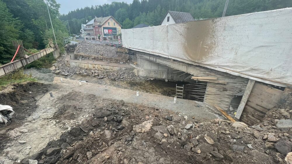 Na mostě přes Jáchymovský potok v Horním Žďáře na silnici I/25 probíhají dokončovací práce mimo vozovku a most je obousměrně průjezdný. Aktuálně dokončujeme obklad svahu pod mostem a přibližně za 20 dní budou stavební práce kompletně hotové. Na mostě byla postavena nová nosná konstrukce, která si od letošního jara vyžádala částečnou uzavírkou s kyvadlovým provozem řízeným semafory. Zhotovitelem rekonstrukce mostu ev. č. 25-002 v přibližné hodnotě 14,5 mil. Kč bez DPH je společnost Metrostav a.s.