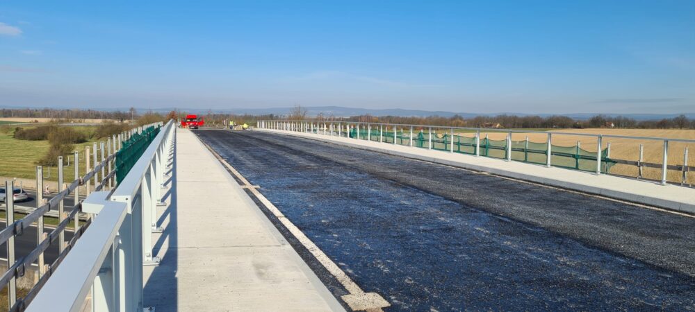 Na dálnici D6 u Potočiště, kde opravujeme most a exit 162, se blížíme ke konci. Stavební práce plánujeme dokončit koncem příštího týdne, kdy bude spuštěn i provoz. Nyní provádíme pokládku asfaltových vrstev, vodorovné dopravní značení a montujeme svodidla.
