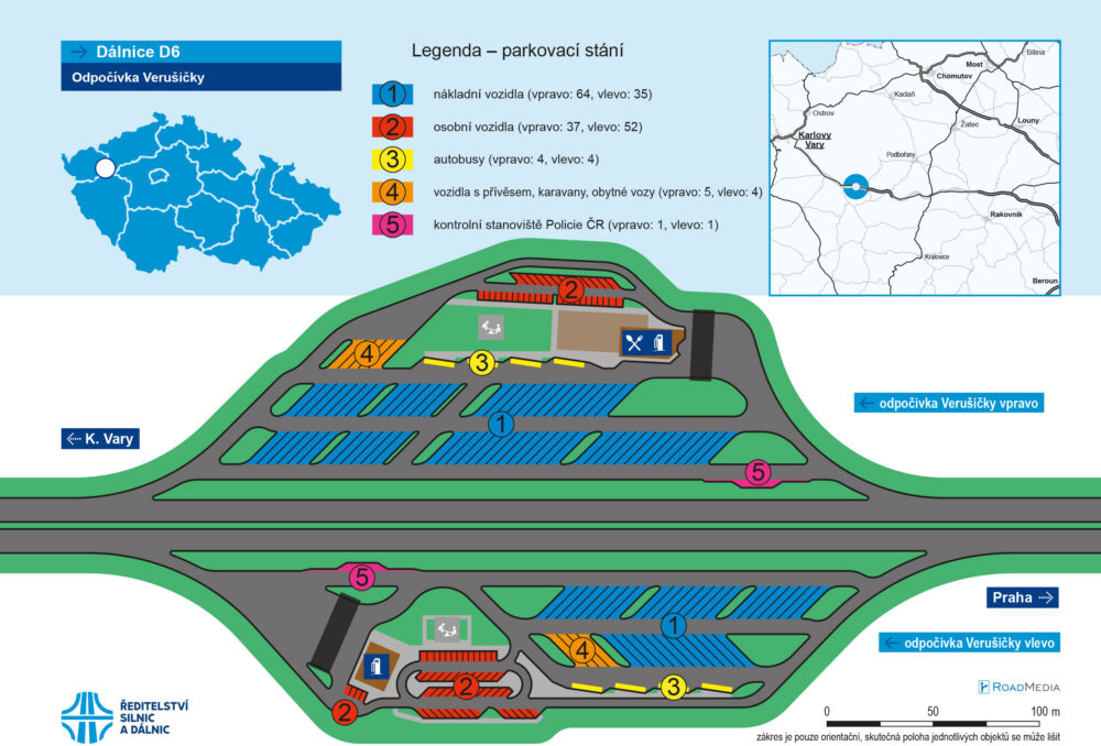 Odpočívka na úseku mezi Karlovými Vary a silnicí I/27 bude po dobudování nabízet parkovací kapacitu i pro dopravu směřující z Německa do průmyslové zóny Triangl u Žatce, kdy na silnici I/13 jsou parkovací kapacity minimální.