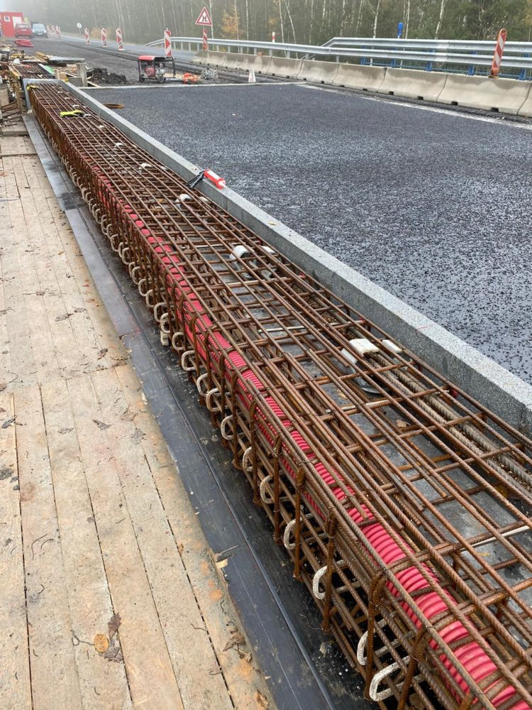 Na silnici I/6 u obce Klest opravujeme most v hodnotě 8,5 mil. Kč bez DPH, kde je zhotovitelem prací společnost Metrostav a.s. Aktuálně zde probíhá pokládka litých asfaltů, vázání armatury římsy a příprava bednění. V rámci rekonstrukce dojde k odstranění stávajícího mostního vybavení, římsy, vozovky i s hydroizolací a obou mostních závěrů, které nahradíme novými. Řidiči místem projedou jedním jízdním pruhem a kyvadlovou dopravu řídí semafory. Práce, které jsme v dubnu 2021 zahájili, budeme mít hotové do konce listopadu.