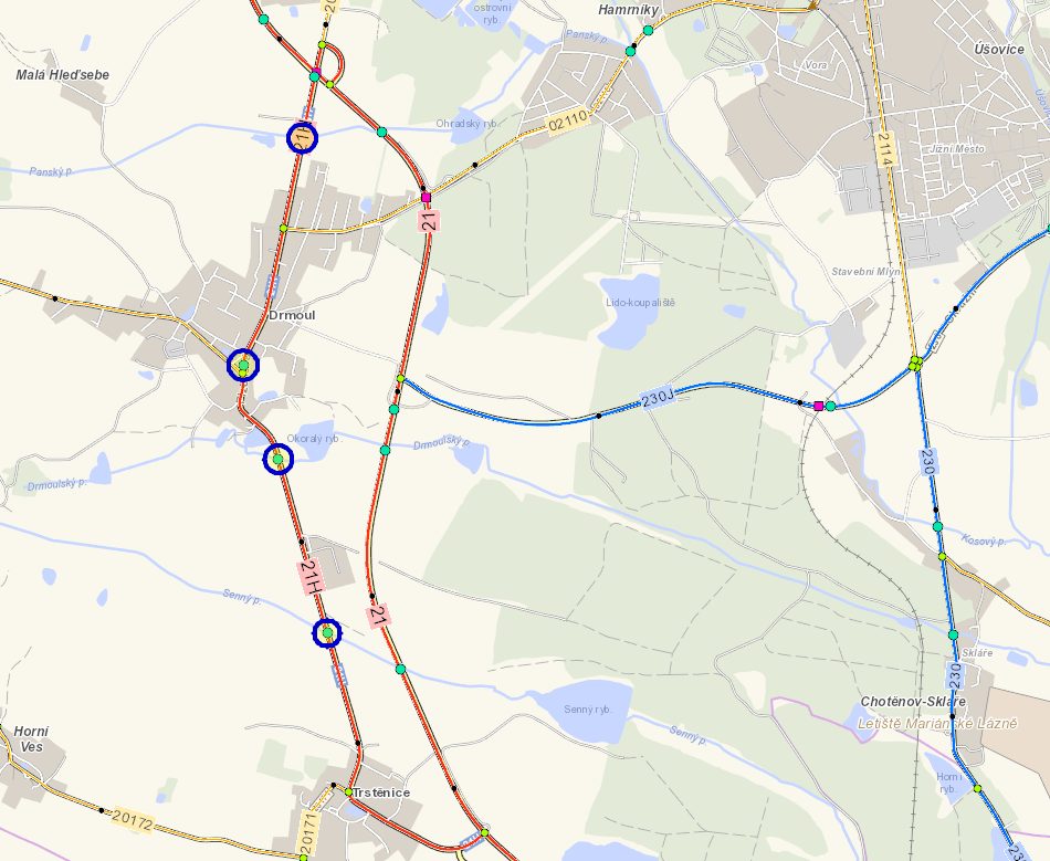 Na silnici I/21H u obce Drmoul probíhá současně oprava čtyř mostů jdoucích za sebou. Dva mosty jsou již zdemolované a aktuálně probíhají práce na propustcích. Úsek je zcela uzavřen a na řidiče zde čeká dopravně značená objízdná trasa po novém obchvatu na silnici I/21. Zhotovitelem prací v hodnotě 8,2 mil. Kč je společnost Lizdroj s.r.o. Rekonstrukce plánujeme ukončit tento rok v červenci. Řidičům se omlouváme za komplikace.