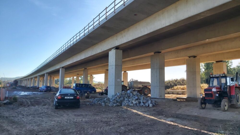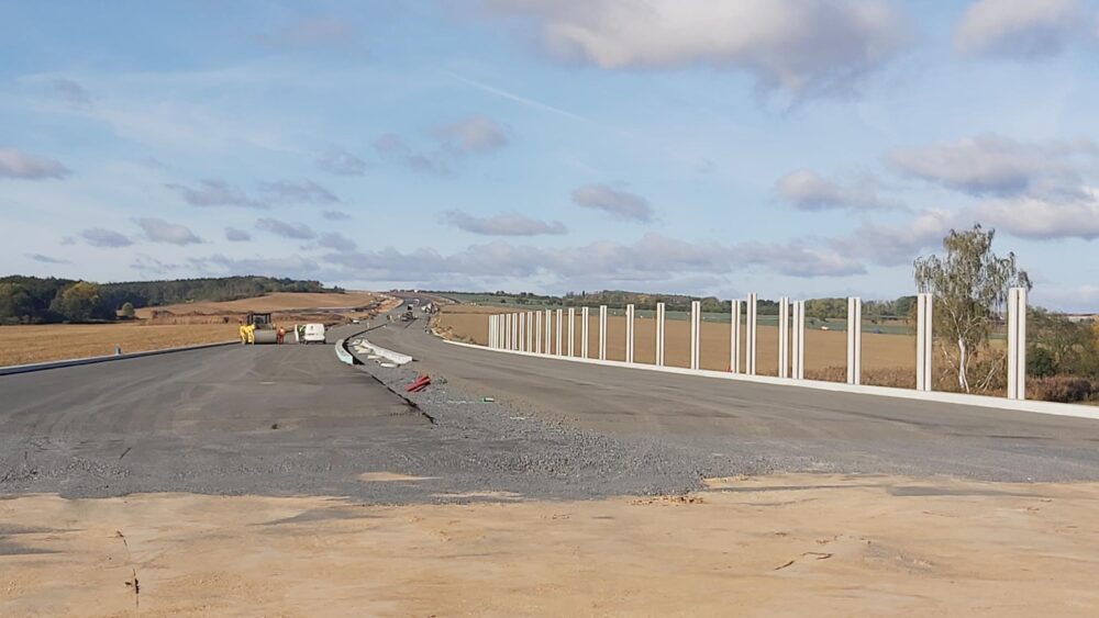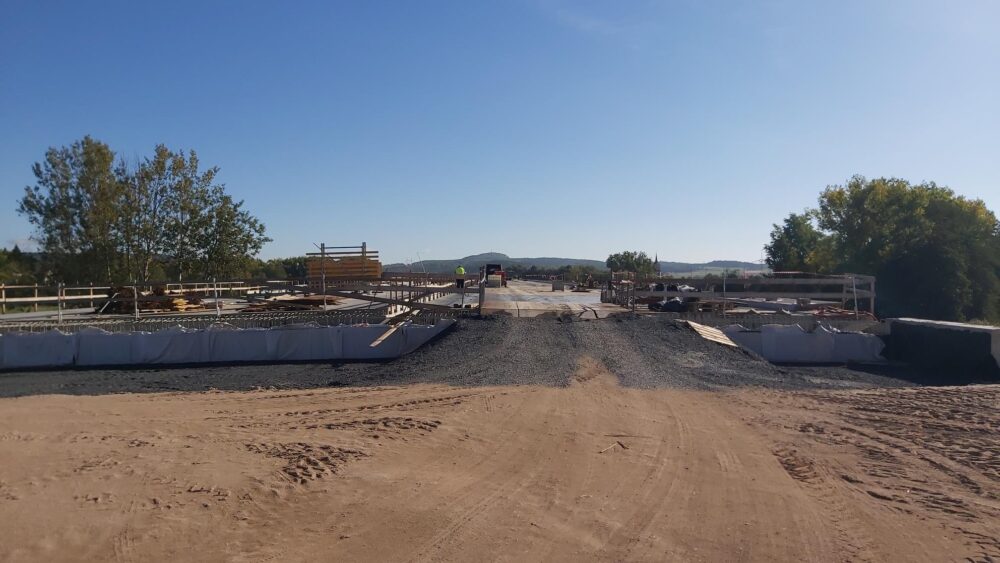 Na stavbě 6,45 km dlouhého úseku dálnice D6 u Krupé aktuálně na hlavní trase pokládáme konstrukční vrstvy z mechanicky zpevněného kameniva a podkladní asfaltové vrstvy. Provádíme zde také drenáže ve středovém dělícím pásu. Na mimoúrovňové křižovatce v Krupé svahujeme další připojovací větve a zhotovujeme svahová odvodňovací žebra. Na estakádě o délce 805 metrů montujeme jak bednění nosné konstrukce, tak i bednění a výztuž římsy. Dále probíhá také výstavba středové kanalizace.