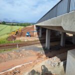 Na stavbě „D6 Krupá, přeložka“ jsou práce v plném proudu. Aktuálně na hlavní trase pracujeme na protihlukových stěnách s celkovou délkou 1,5 kilometru, pokládáme monolitické betonové žlaby a asfaltové souvrství. Pod mosty provádíme terénní úpravy a dláždíme okolo gabionových křídel. Na 805 metrů dlouhé estakádě jsme namontovali sloupky pro svodidla a zábradlí a pracujeme na izolaci mostovky.
