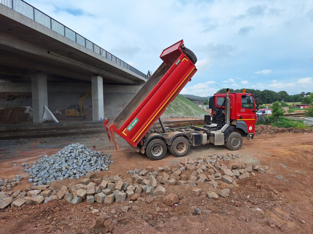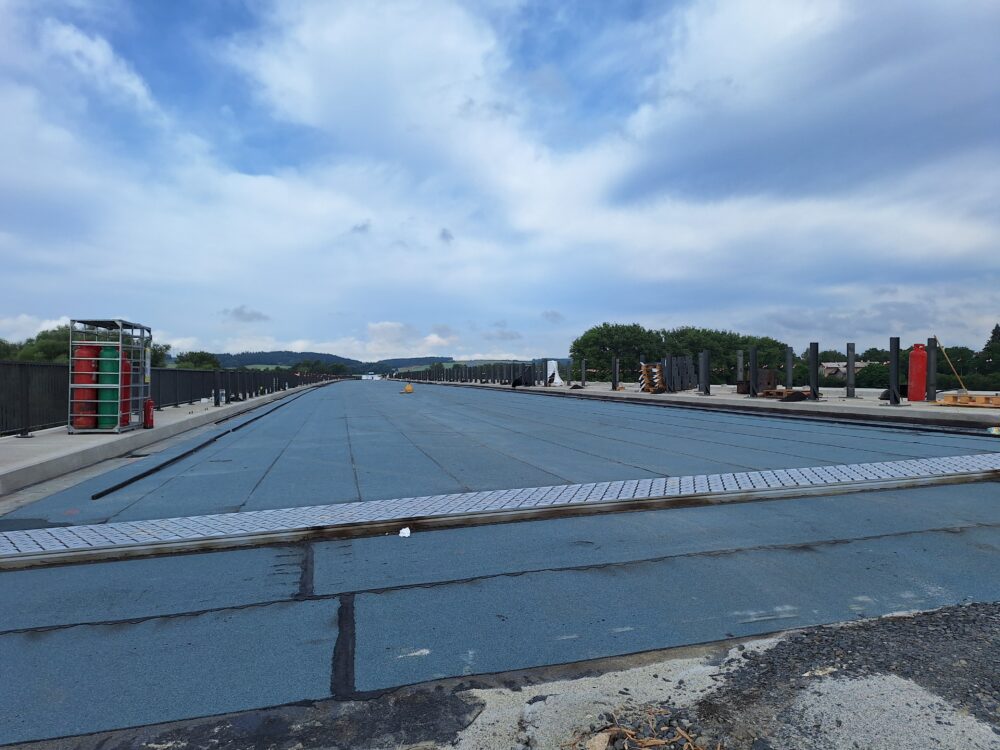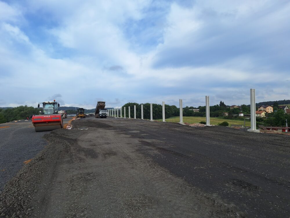 Na stavbě „D6 Krupá, přeložka“ jsou práce v plném proudu. Aktuálně na hlavní trase pracujeme na protihlukových stěnách s celkovou délkou 1,5 kilometru, pokládáme monolitické betonové žlaby a asfaltové souvrství. Pod mosty provádíme terénní úpravy a dláždíme okolo gabionových křídel. Na 805 metrů dlouhé estakádě jsme namontovali sloupky pro svodidla a zábradlí a pracujeme na izolaci mostovky.