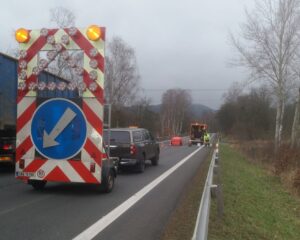 V místě prací prosíme řidiče o bezpečné projíždění kolem našich pracovníků.