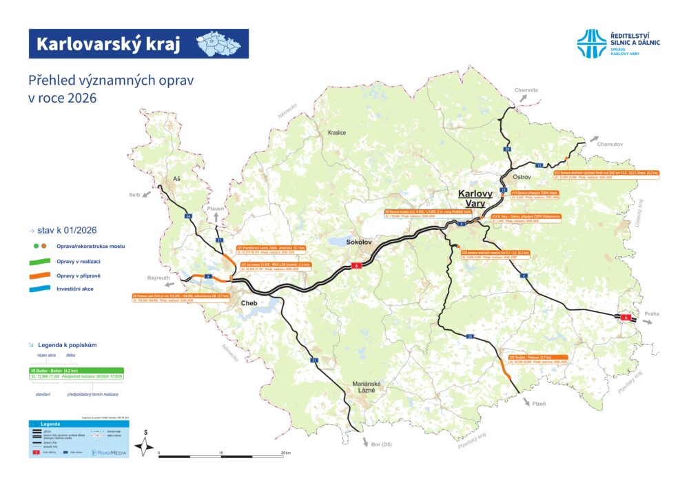 V roce 2026 plánujeme v Karlovarském kraji devět velkých akcí na silnicích I. tříd. V současné době se intenzivně připravujeme na zahájení nové stavební sezóny.