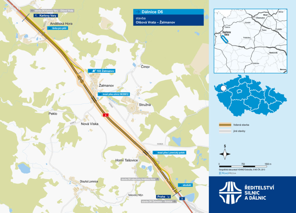 Dálnice D6 z Prahy přes Karlovy Vary do Chebu bude po dokončení měřit 168,6 kilometru. První plány na propojením Chebu s Prahou vznikaly již v polovině 30. let dvacátého století v rámci přípravy dálkové silnice Cheb – Košice.