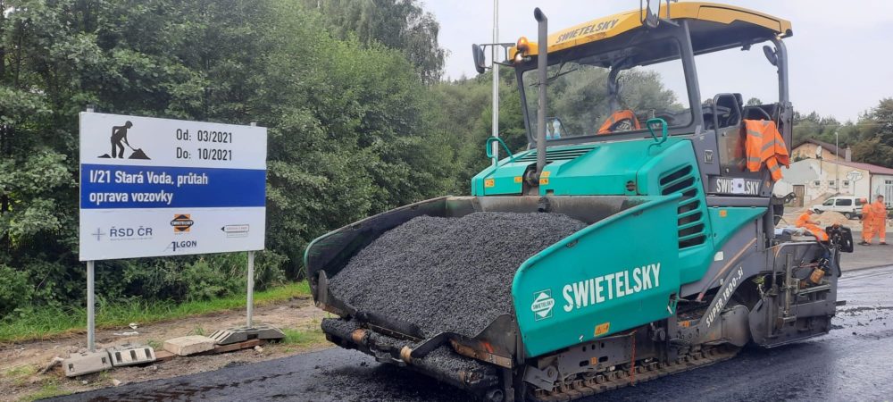 Na opravě silnice I/21 ve Staré Vodě intenzivně pracujeme. V uplynulých dnech zde proběhla pokládka ložné a obrusné asfaltové vrstvy a nyní pracujeme na chodnících. Kromě opravy povrchu vozovky v celkové délce 1 900 metrů také dojde k výměně části kanalizace a rekonstrukci chodníků. Opravu v hodnotě 43,89 mil. Kč bez DPH plánujeme ukončit v říjnu. Řidiči zde nyní projedou obousměrně sníženou rychlostí na 30 km/h.