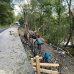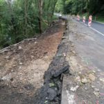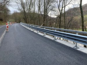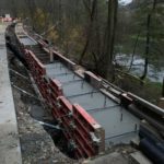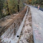 Na místě jsme provedli výkop na základovou spáru a založili opěrnou zeď na mikropilotách, vrtali zápory a mikropiloty pro zpevnění země, vyvázali výztuž dříku k opěrné zdi, montovali bednění a betonovali. Po zhotovení opěrné zdi jsme se pustili do prací na komunikaci. Kvůli nepříznivému počasí jsme v uplynulých dnech nemohli provést vodorovné dopravní značení, které nyní doděláme za provozu.