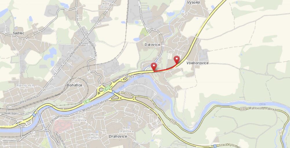 Na silnici I/13 mezi Karlovými Vary a Borem opravujeme více jak 3 kilometry dlouhý úsek vozovky. Začátek úseku je v místě křížení s místní komunikací na konci mostního objektu ev.č.13-003.2 (provozní staničení km 0,982) a konec úseku je v km 4,058 za mostním objektem ev.č.13-004a.2. Doprava je svedena do pravého jízdního pásu (ve směru Karlovy Vary) v režimu 1+1.