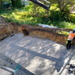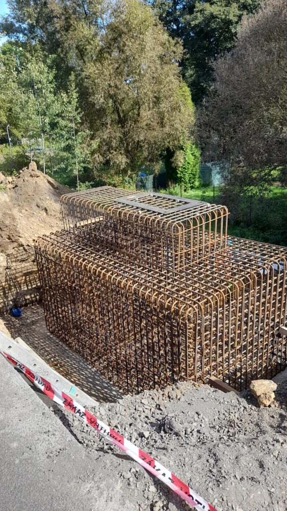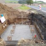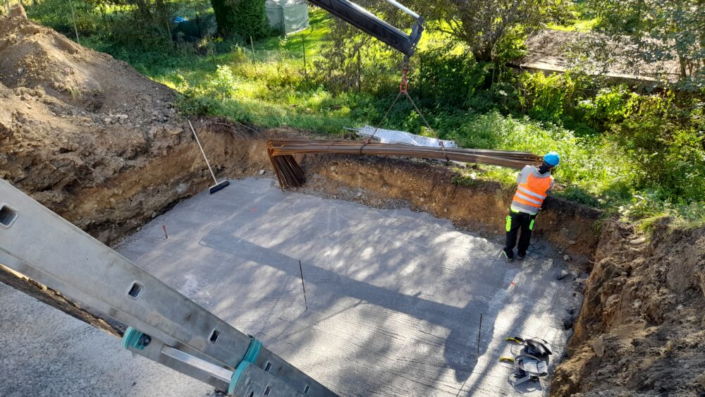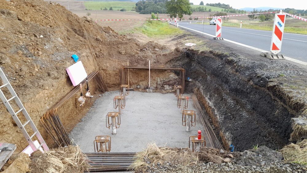 Aktuálně pracujeme na patce poblíž Ostrova, která je vybetonovaná, nyní probíhá ošetřování vybetonované konstrukce, demontáž bednění a dále provádíme zemní práce pro elektropřípojku. Druhá patka se nachází na poddolovaném území, proto bylo nutné provést její založení na mikropilotách. V současné době jsou mikropiloty a podkladní beton hotový a nyní vážeme výztuže.