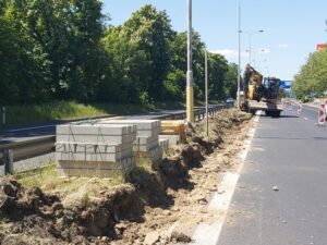 V Karlovými Vary na silnici I/6 jsme dokončili výměnu poškozených silničních obrub v obou jízdních pásech. Práce probíhají postupně po úsecích a provoz byl vždy sveden do jednoho jízdního pruhu. Vyměnili jsme celkem 1 300 metrů obrub, přičemž 80 % poškozených obrub se nachálo ve středovém dělícím pásu. Výměnu obrub jsme prováděli za pomoci kolového bagru a především ručními pracemi. Zhotovitelem prací v hodnotě 1,9 mil. Kč bez DPH je společnost Mosastav s.r.o.