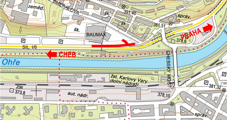 V příštím týdnu začneme upravovat připojovací pruh na silnici I/6 při výjezdu z Hybešovy ulice v Karlových Varech. Doprava na silnici I/6 ve směru od Prahy bude svedena do jednoho jízdního pruhu a výjezd z Hybešovy ulice bude uzavřen. Hotovo by mělo být v září 2025.