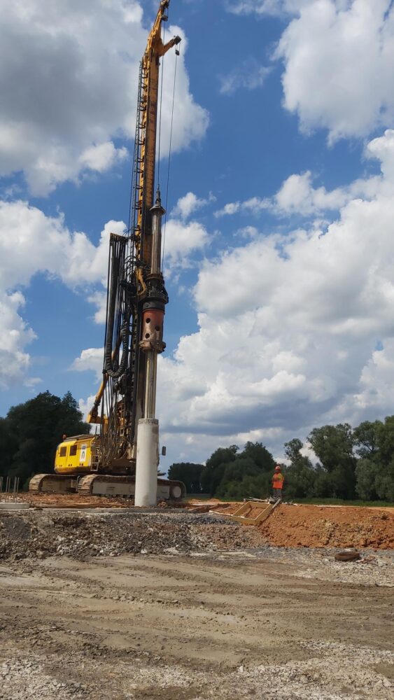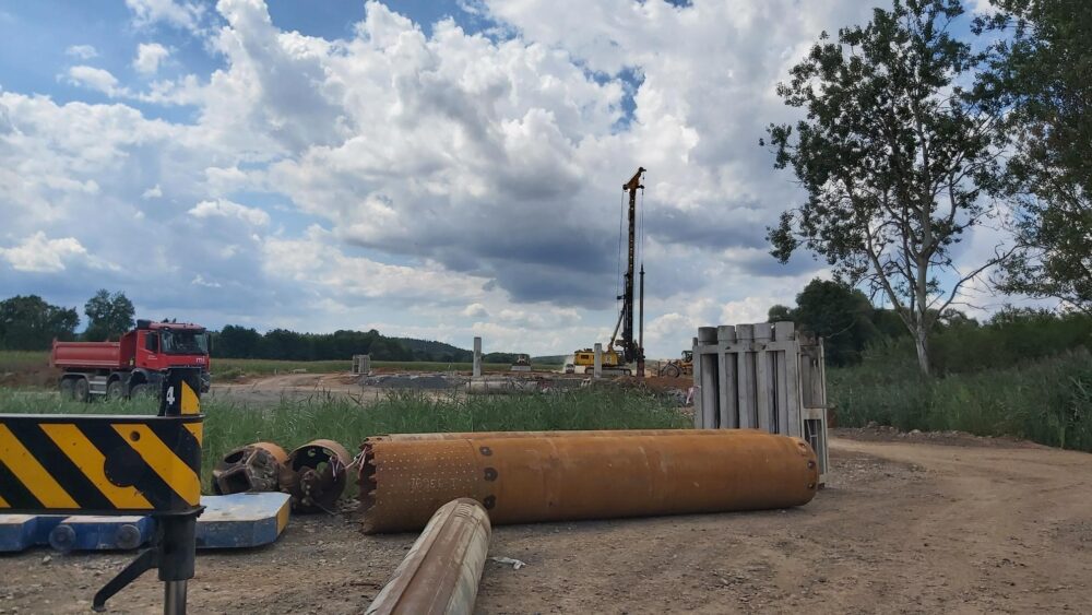 Na stavbě nového úseku dálnice D6 u Krupé jsme zahájili hlubinné zakládání nejdelší estakády dosahující 805 m. Aktuálně probíhá vrtání pilot o průměru 900 mm v hloubce 14 až 20 metrů s ohledem na geologii podloží. Piloty jsou realizovány pomocí vrtné soupravy za vkládání pažnice, která chrání vrt před zasypáním do doby betonáže. Pod estakádou bude celkem 524 pilot, jejichž zhotovení předpokládáme na 6 měsíců. Nosnou konstrukci pak tvoří 23 polí. Na samotné estakádě budou práce probíhat přibližně necelé dva roky. Stavba řeší celkem 5 mostních objektů, z toho 4 jsou na hlavní trase a 1 nadjezd jako součást mimoúrovňové křižovatky Krupá.