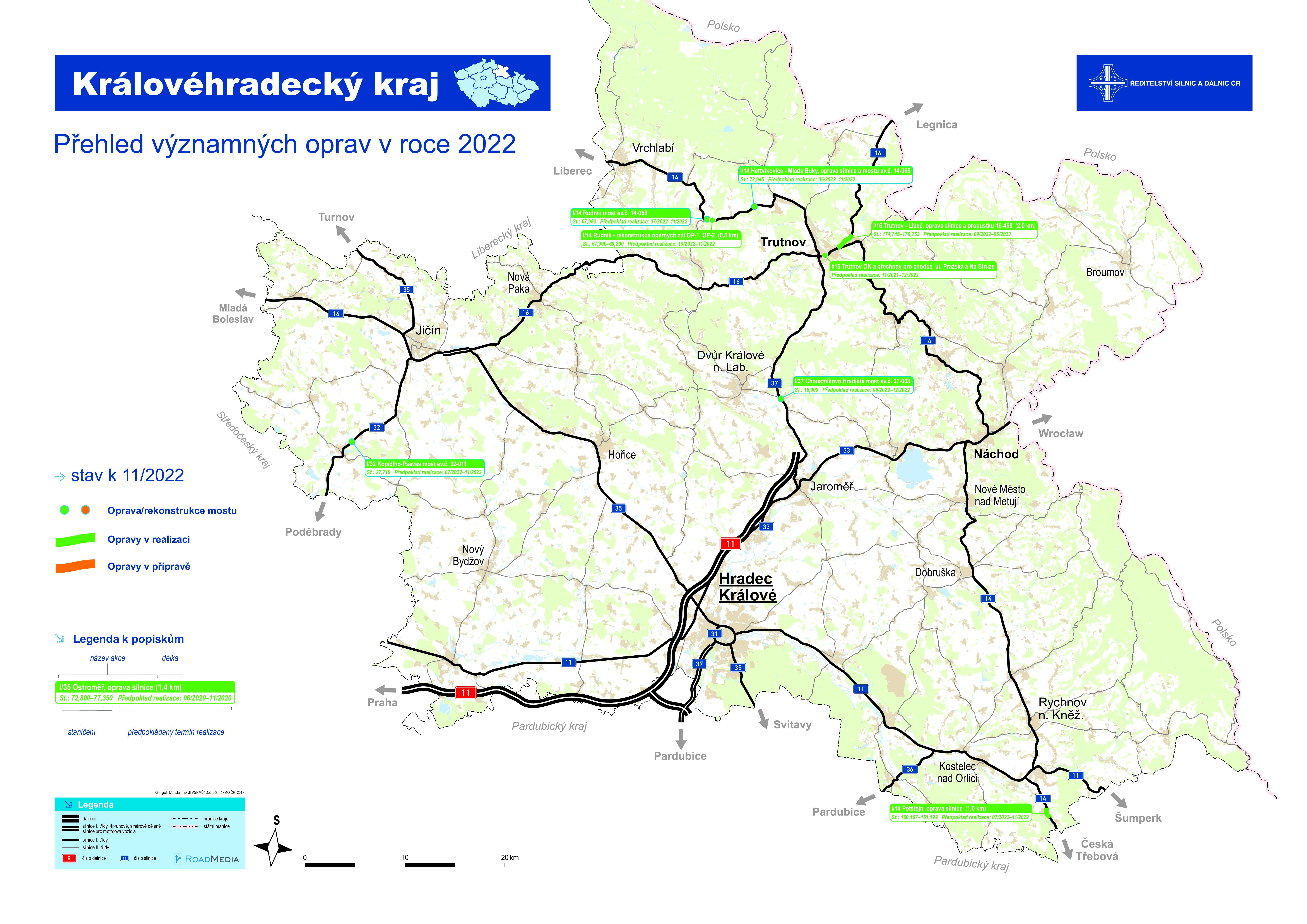 Přehled oprav v Královéhradeckém kraji v listopadu 2022