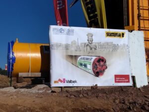 Po čtvrtečním křtu razícího štítu „Jaromíra“ jsme v pátek odpoledne na stavbě obchvatu Jaroměře na silnici I/33 začali razit 650 m dlouhou kanalizaci. Ta bude sloužit pro odvádění dešťových vod ze zpevněných ploch stavby obchvatu do řeky Labe.
