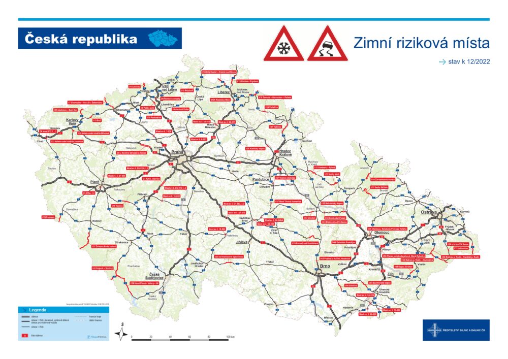 Střídání teplot kolem 0°C je jedna z nejnebezpečnějších situací pro řidiče během začátku zimy. Vytipovali jsme nejrizikovější místa napříč celým Českem.