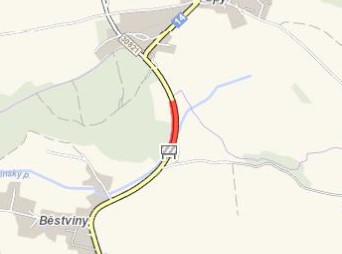 silnice I/14, v katastru obce Dobruška, okr. Rychnov nad Kněžnou, přes: silnice II/298 (Val), silnice III/29853 (Zákraví):
