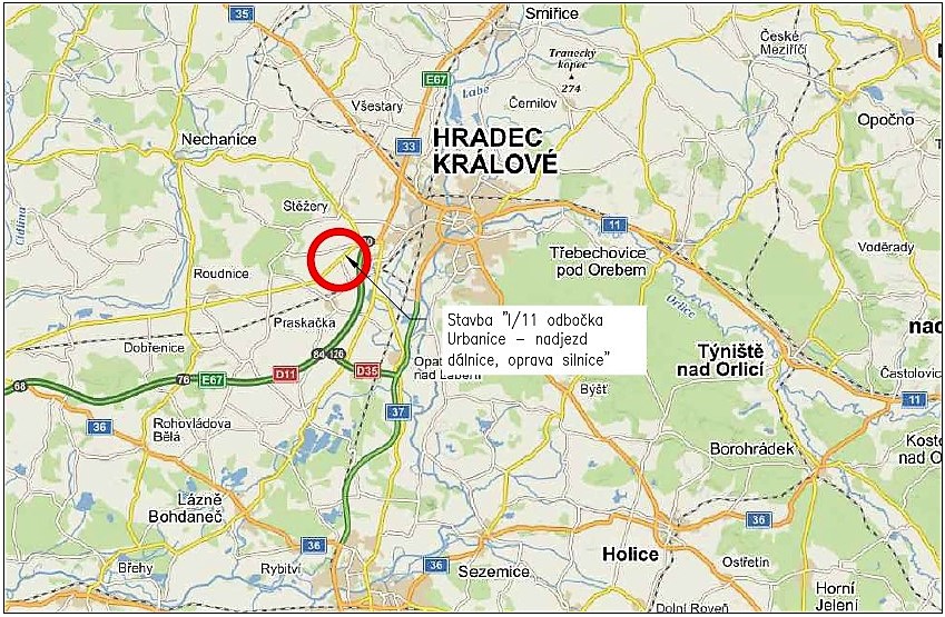 Část silnice I/11 v odbočce na Urbanice – nadjezd dálnice projde v letošní stavební sezoně rekonstrukcí. Konkrétně dojde k výměně obrusné vrstvy v rozsahu celé stavby, dále pak v úseku km 41,436 až 44,332 k realizaci stmelené podkladní vrstvy, a tím snížení výkyvů v únosnosti a její zlepšení. Reprofilací se zajistí požadovaný příčný sklon a v omezeném rozsahu se upraví rovinatost v podélném směru. Šírkové uspořádání komunikace bude sjednoceno tak, aby byla zajištěna konstantní šíře krytu 7,5 m a oboustranné krajnice 0,75 m. V křižovatce s III/32329 dojde ke zřízení směrových ostrůvků pro zpřehlednění prostoru křižovatky a usměrnění vozidel. Budou seříznuty a zpevněny krajnice, vyčistíme příkopy a propustky. Dojde k výměně poškozených částí bezpečnostních zařízení a bude obnoveno svislé a vodorovné dopravní značení v rozsahu stavby.
