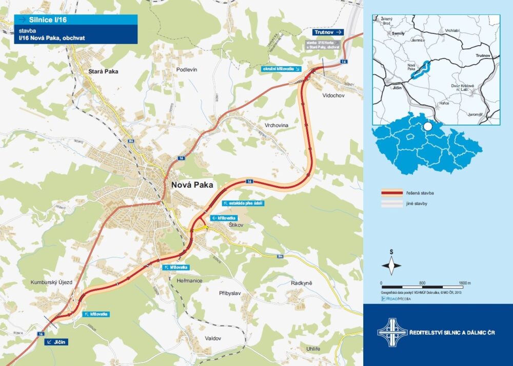 V letošním roce máme v Královéhradeckém kraji v plánu zahájení hlavní stavby „I/16 Nová Paka – obchvat“. Silnice I/16 je důležitou spojnicí mezi Prahou a Krkonošemi, zároveň také mezi továrnami automobilky Škoda v Mladé Boleslavi a ve Vrchlabí. Stávající průtah silnice I/16 přes Novou Paku nevyhovuje podmínkám silnice I. třídy směrově ani výškově a ani počtem a tvarem křižovatek. V současné době je stavební povolení v právní moci, máme vykoupené všechny potřebné pozemky. Probíhají přípravné práce: archeologický záchranný výzkum, geotechnický a hydrogeologický monitoring.