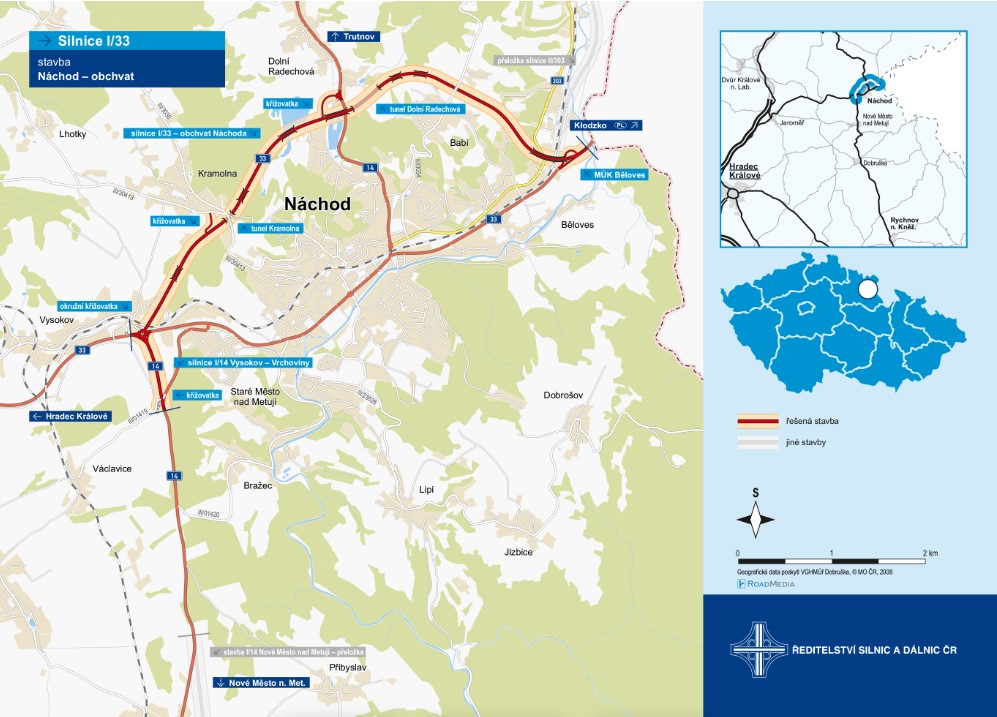 Podrobnosti ke stavbě najdete v naší mapové aplikaci: I/33 Náchod – obchvat, I/14 Vysokov-Vrchoviny – Mapová aplikace – ŘSD ČR (rsd.cz)
