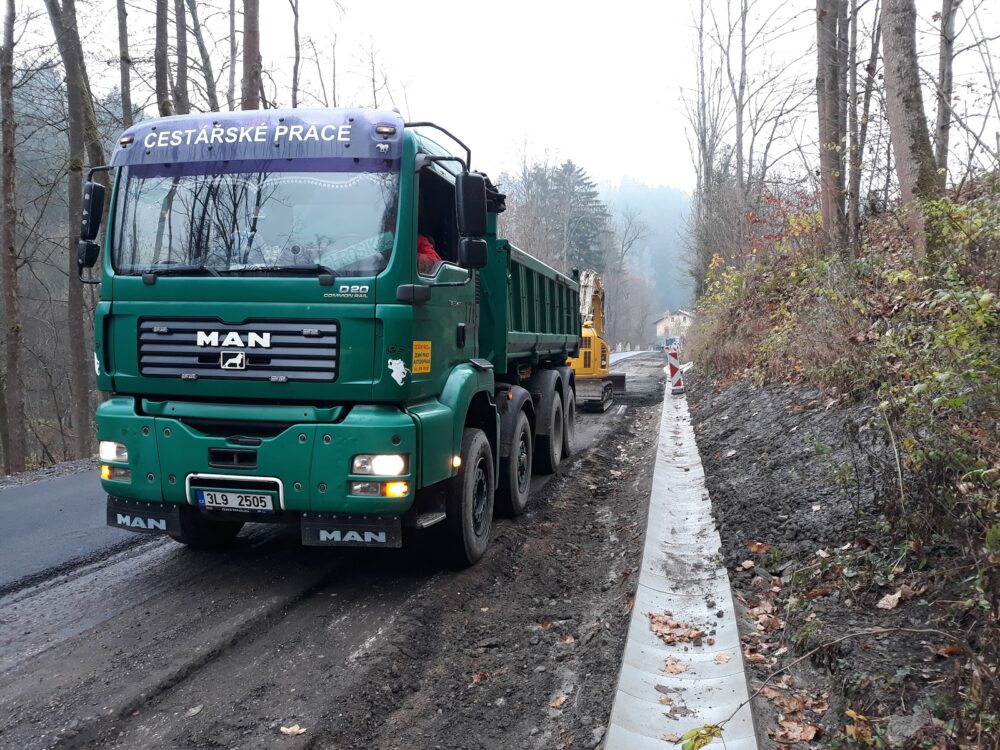 Na silnici I/14 u Poniklé jsme v předchozích dnech položili ložné asfaltové vrstvy na celé šířce komunikace. Dnes byla zahájena pokládka asfaltové obrusné vrstvy na jedné polovině vozovky a do konce tohoto týdne bude vyasfaltovaná celá komunikace. Následně budou probíhat dokončující práce spočívající v montáži svodidel, v realizaci dopravního značení apod. Rekonstrukce úseku bude dokončena v druhé polovině listopadu 2022. Stavební práce v hodnotě 58,46 mil. Kč bez DPH provádí společnost Eurovia CS, a.s. Řidiči místem nyní projedou kyvadlovým provozem řízeným semafory.