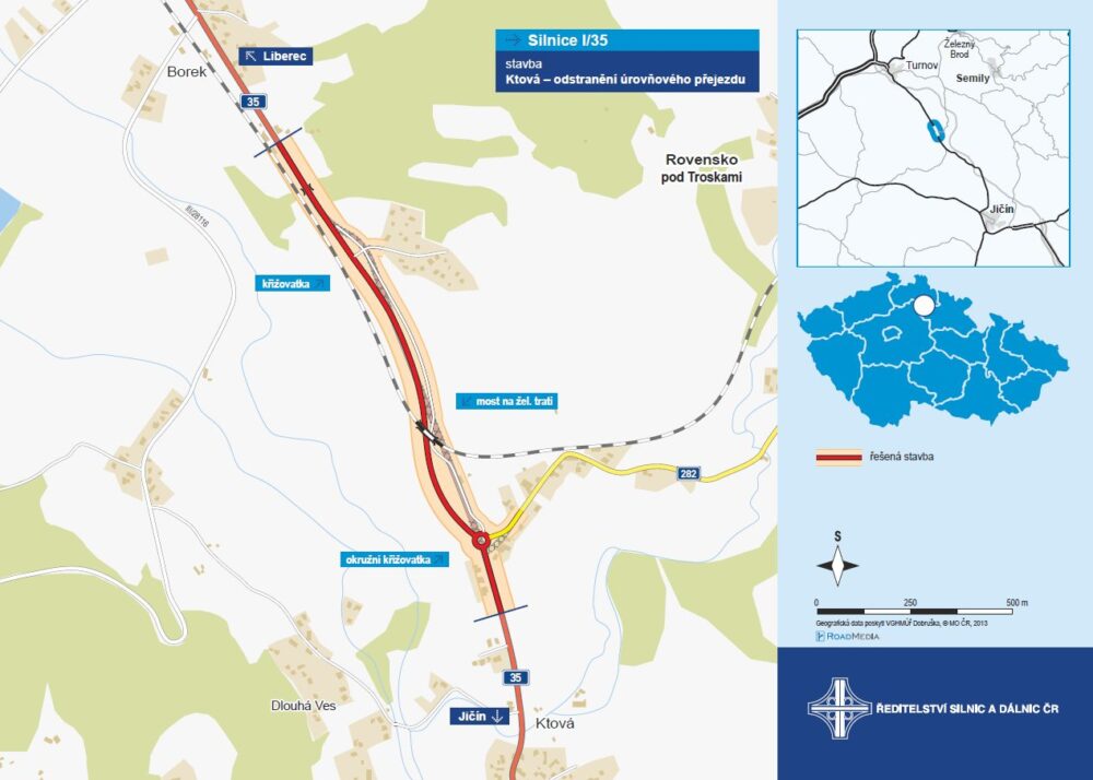 Stavba zahrnuje zhotovení hlavní trasy o délce 1018 metrů, mimo, okružní křižovatku s vjezdem do obce Ktová a souběžnou místní komunikací, opěrnou zeď o délce 150 metrů a protihlukovou stěnu. Trať je nad silnicí vedena po novém ocelovém příhradovém mostu s rozpětím 48 metrů. Z důvodu zklidnění dopravy je před obcí Ktová vybudována okružní křižovatka, která je navržena jako čtyřramenná s průměrem 40 m. V blízkosti okružní křižovatky jsou umístěny zálivy pro autobusové zastávky, ke kterým je v rámci stavby zřízen přístup po nových chodnících. Od okružní křižovatky směrem do Ktové je v délce 130 m vrstva nízkohlučné živičné vozovky, která ve spojení s protihlukovou clonou sníží vliv dopravy na okolní zástavbu. Celý prostor okružní křižovatky a zastávek je osvětlen veřejným osvětlením. Přeložka silnici I/35 v daném úseku je navržena tak, aby odstranila dvě zásadní nehodová místa – prudké stoupání v protisměrných obloucích a úrovňové křížení se železniční tratí.