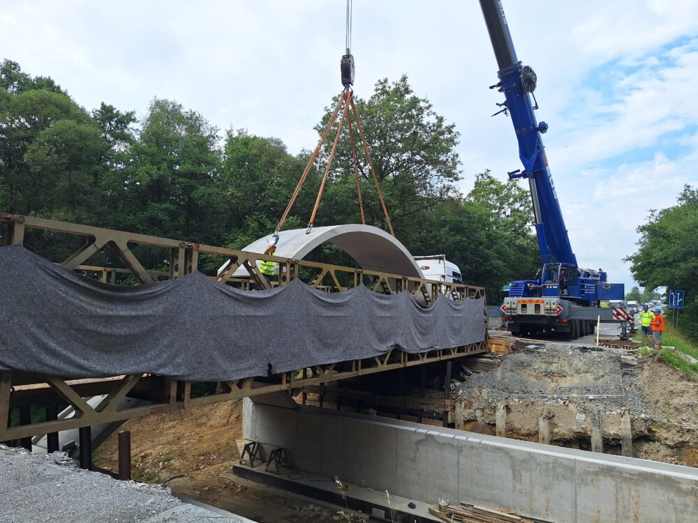 Dnes 22. 7. u Jablonného v Podještědí na silnici I/13 probíhá na mostě (ev. č. 13-118) montáž sedmi nosníků o celkové hmotnosti 119 tun (hmotnost jednoho nosníku je 17 tun). Při instalaci je omezená doprava a jezdí se kyvadlově pomocí semaforů. Od zítra tj. 23. 7. projedete v režimu 1+1 sníženou rychlostí 30 km/h.
