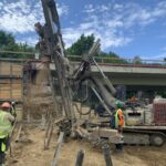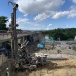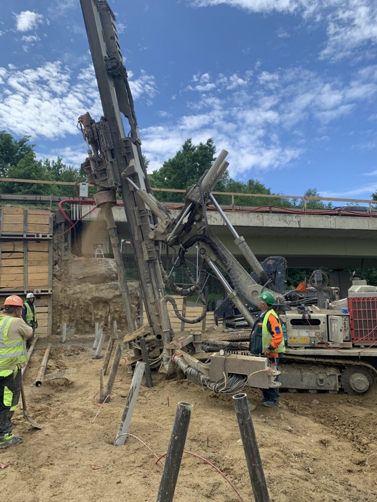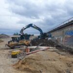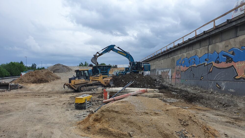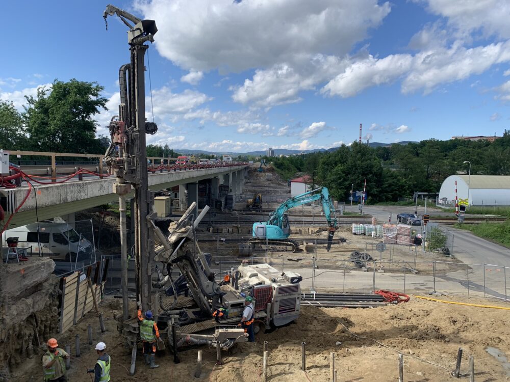 Na prvním mostě ve směru od Prahy se provádí přípravné práce na hlubinné založení, jako je obnažování původních základů, pažení jam pro založení a realizace mikropilot pro opěru. Na druhém mostě realizujeme přeložku horkovodu a zahájili jsme práce na kanalizaci.