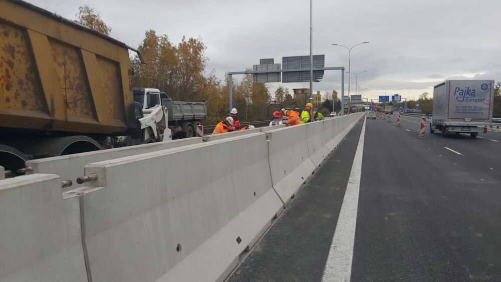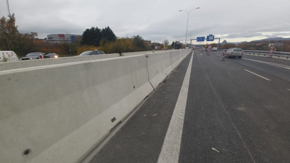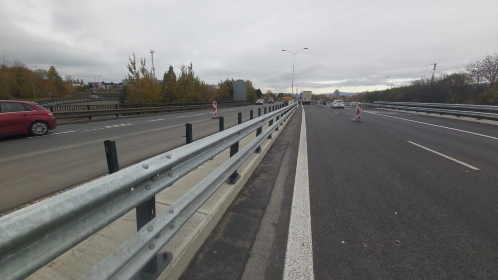 V Liberci na silnici I/35 aktuálně probíhají dokončovací práce, jako je osazování betonových a ocelových svodidel ve středovém dělícím pásu a v jízdním pásu ve směru na Turnov na sjezdu k aréně oprava vozovky a výstavba chodníku za úplné uzavírky.